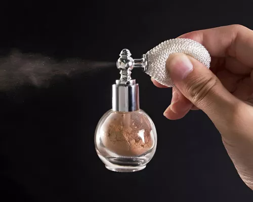 I was intrigued by the uniqueness of these products, and they didn't disappoint! While they're smaller than expected, the packaging is attractive and adds a nice touch to my vanity. It takes some practice to achieve the desired spray effect, but even if you apply too much, blending it out with a brush or sponge is effortless. I also enjoy using it as an eyeshadow to add sparkle and highlight. The soft baby powder scent is delightful and fades gradually.