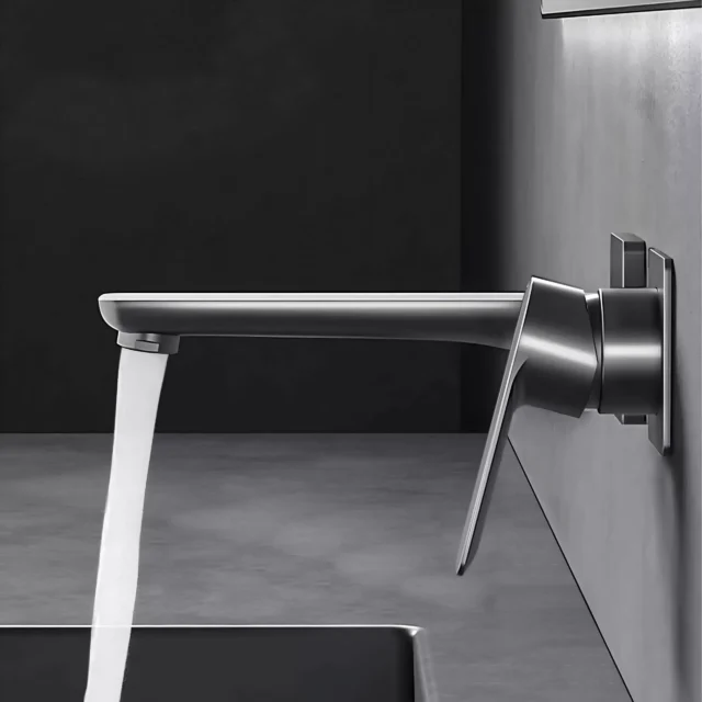 The Black Brass Luxury Wall Mounted Bathroom Faucet stands out for its sleek, embedded design and premium materials. Its minimalist profile enhances any bathroom decor, while its durable construction ensures years of dependable use. The hot and cold water mixer offers a customized experience, making it as functional as it is stylish.