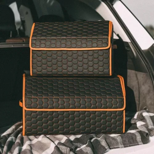 What initially drew me towards this product was its promise of quick assembly – and boy did it deliver! Within two minutes flat, my trunk went from chaotic mess to organized bliss. And let’s talk about how sturdy this thing is! Crafted from heavy-duty materials like eco-leather and Oxford fabric plus those hard PVC inserts? That's quality right there.