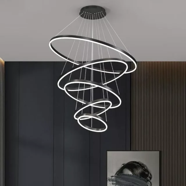 Step into the world of modern lighting with our stunning Nordic LED Chandelier, designed to be the centerpiece of your home or commercial space. The sleek, circular design, combined with the warm glow of LED lights, creates a sophisticated ambience that is both inviting and mesmerizing. Perfect for your living room, dining area, staircase, or kitchen, this dimmable pendant lamp is a harmonious blend of functionality and style.