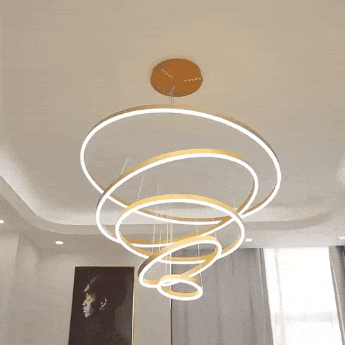 Dimmable Nordic LED Chandelier – Modern 6-Ring Pendant Light for Home & Commercial Spaces