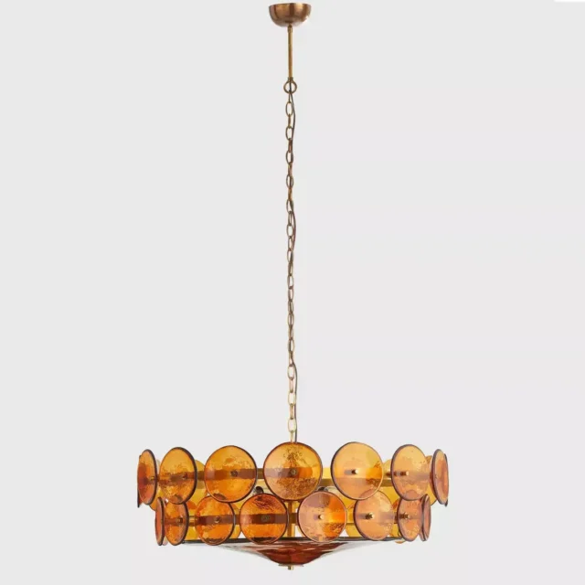 This chandelier has a distinctive design that adds flair to any room, though it may be smaller than anticipated. Adjusting the rings is essential to avoid direct glare due to its brightness. Achieving the right balance is crucial to prevent the light from shining in your eyes. It's a standout piece, ideal for those seeking an artistic light fixture. However, be aware of the potentially challenging installation and consider placing it in a room with high ceilings to minimize direct glare.
