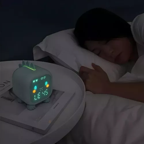 this dinosaur alarm clock is amazing. my child adores the cute design and it has quickly become a favorite in their room. the voice control feature is easy to use and adds a fun element to setting the alarm. the night light is soothing and provides a nice, soft glow that helps my child feel safe at night. the alarm is effective but not too loud, waking my child gently. the clock is also very well-made and durable, so i know it will last a long time. it has made our mornings much smoother and more enjoyable. highly recommend this clock to other parents.