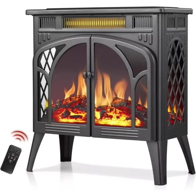 • Dual Heating Modes: Equipped with 750W and 1500W heating options, this fireplace provides 5,100 BTUs of warmth for spaces up to 400 sq. ft.