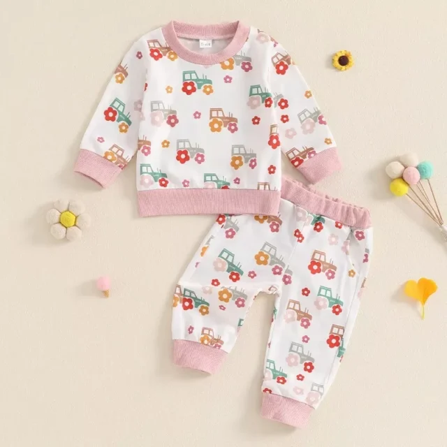 Your little one will look charming and feel cozy in this delightful 2PCS Floral Tractor Print Fall Set. Perfectly designed for those playful and stylish days, this outfit combines a long-sleeve O-neck top with matching pants, making it an ideal choice for all seasons. Whether it’s a casual day out or a family gathering, your little girl will be the center of attention in this adorable set.