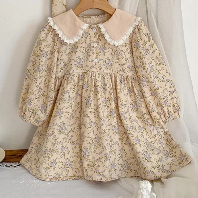This dress is more than just a pretty outfit – it’s a blend of comfort, style, and practicality. The full-length sleeves offer warmth, while the knee-length design allows for easy movement, letting your little one play freely. The Peter Pan collar adds a touch of vintage charm, and the floral print brings a splash of color to brighten any day. With a straight silhouette and pleated details, this dress is a versatile piece that can be dressed up or down for any occasion.