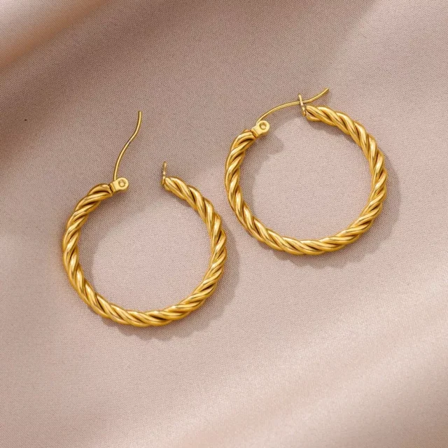 • Unique Twisted Design – Stand out with a unique, eye-catching twist on the classic hoop that gives your look an extra layer of sophistication.